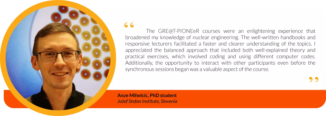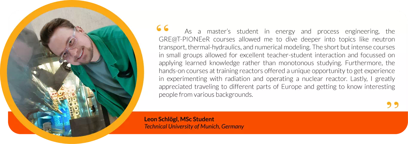 GRE@T-PIONEeR is a project which developed specialised education and training resources for post-graduate students in reactor physics and safety. The aim was to create an alliance aimed at teaching advanced and specialised reactor physics and nuclear reactor safety while making use of synergies between the different consortium members.